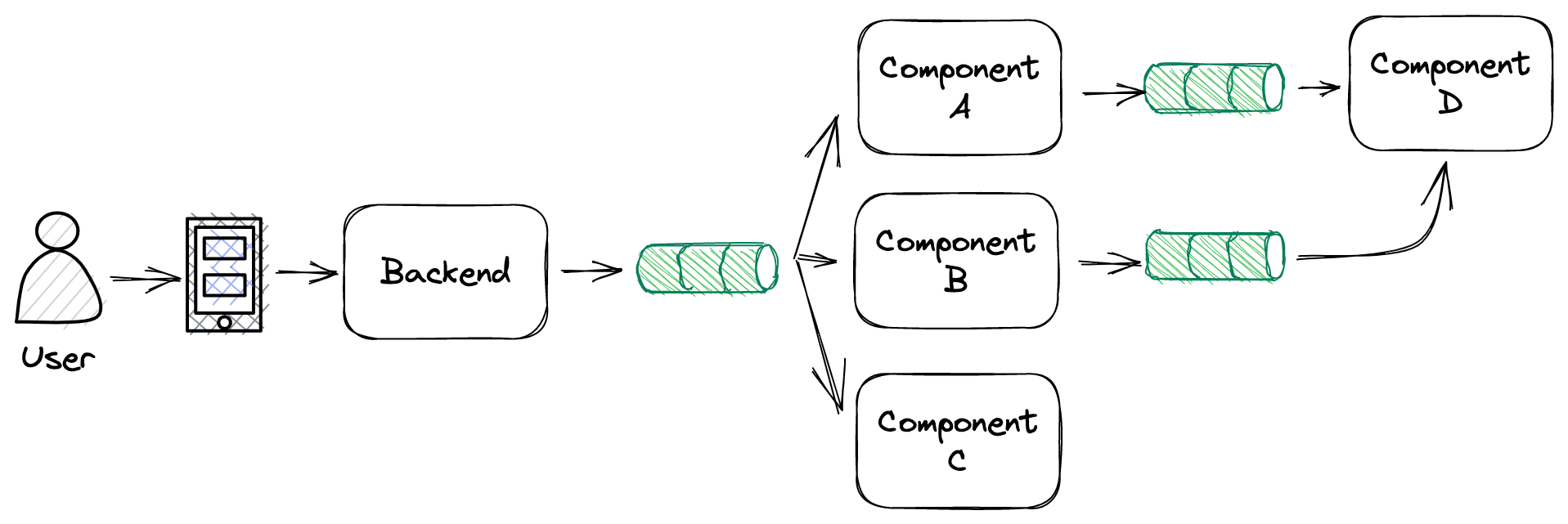 Component Cwhich reacts to the events sent by theBackend - Components that consume and produce like